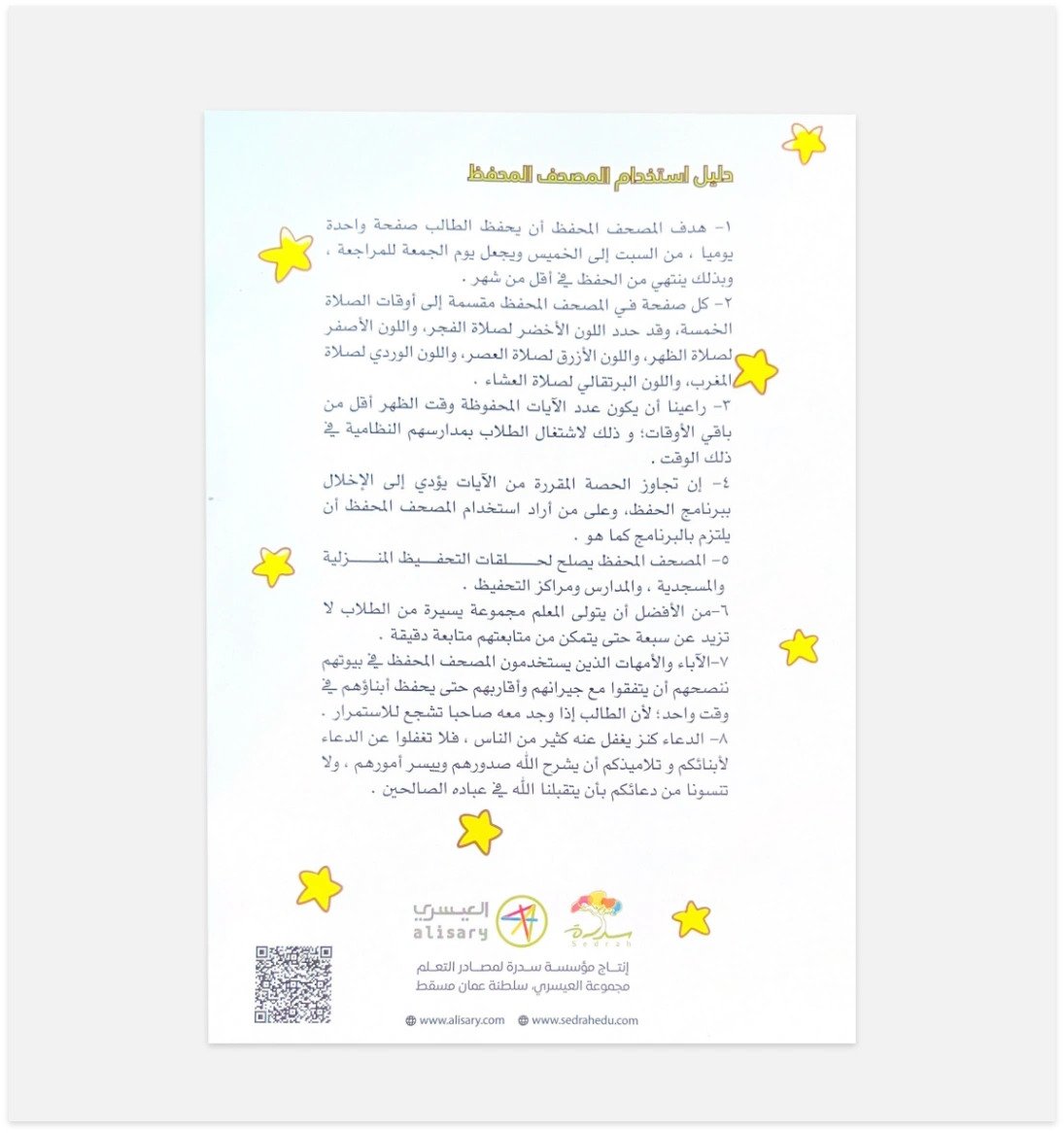 حل عملي لتحفيظ الأطفال جزء عم. كل صفحة مقسمة إلى ٥ أقسام، وفي نهاية المصحف جدول للحفظ